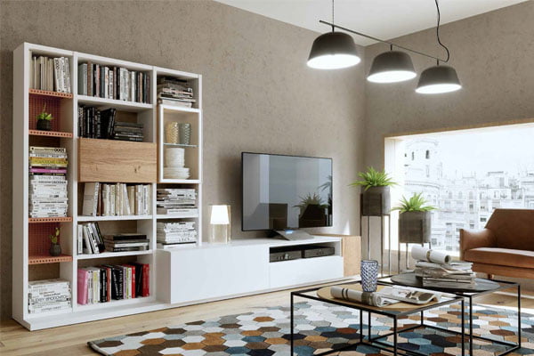 Composición formada por Blanco Mate, Roble Montana y Calabaza Mate.