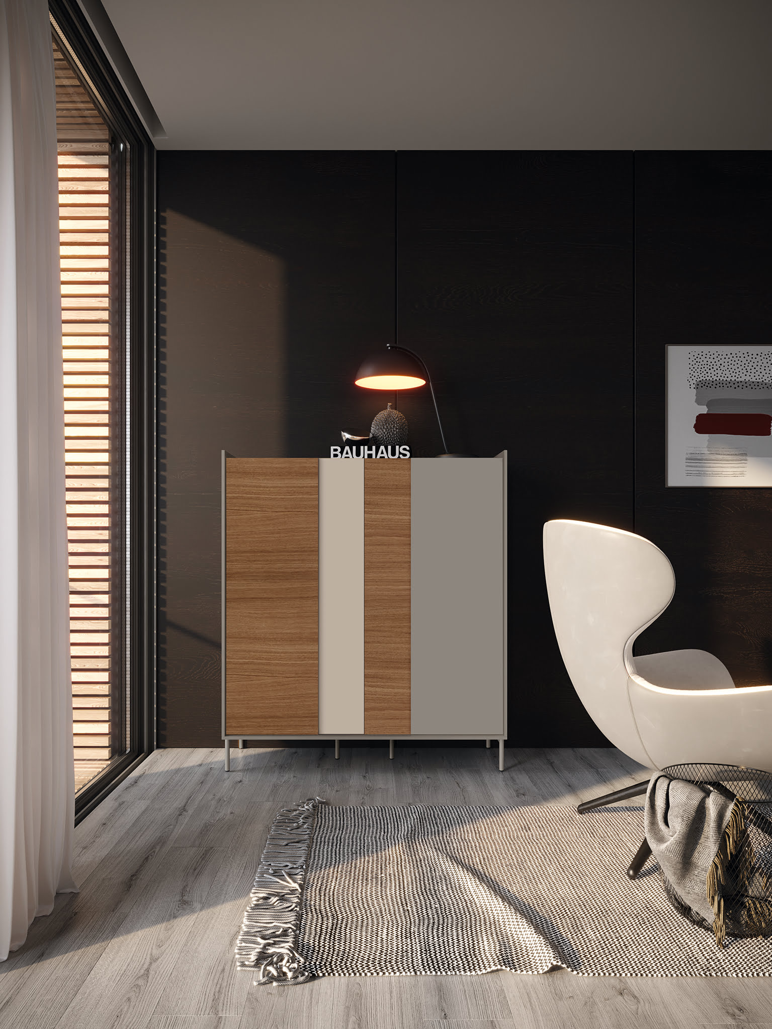 Mueble auxiliar queens con un diseño muy actual y moderno. La combinación de la madera de roble con las 2 lacas crea un volumen muy atractivo que le dará vida a cualquier espacio.